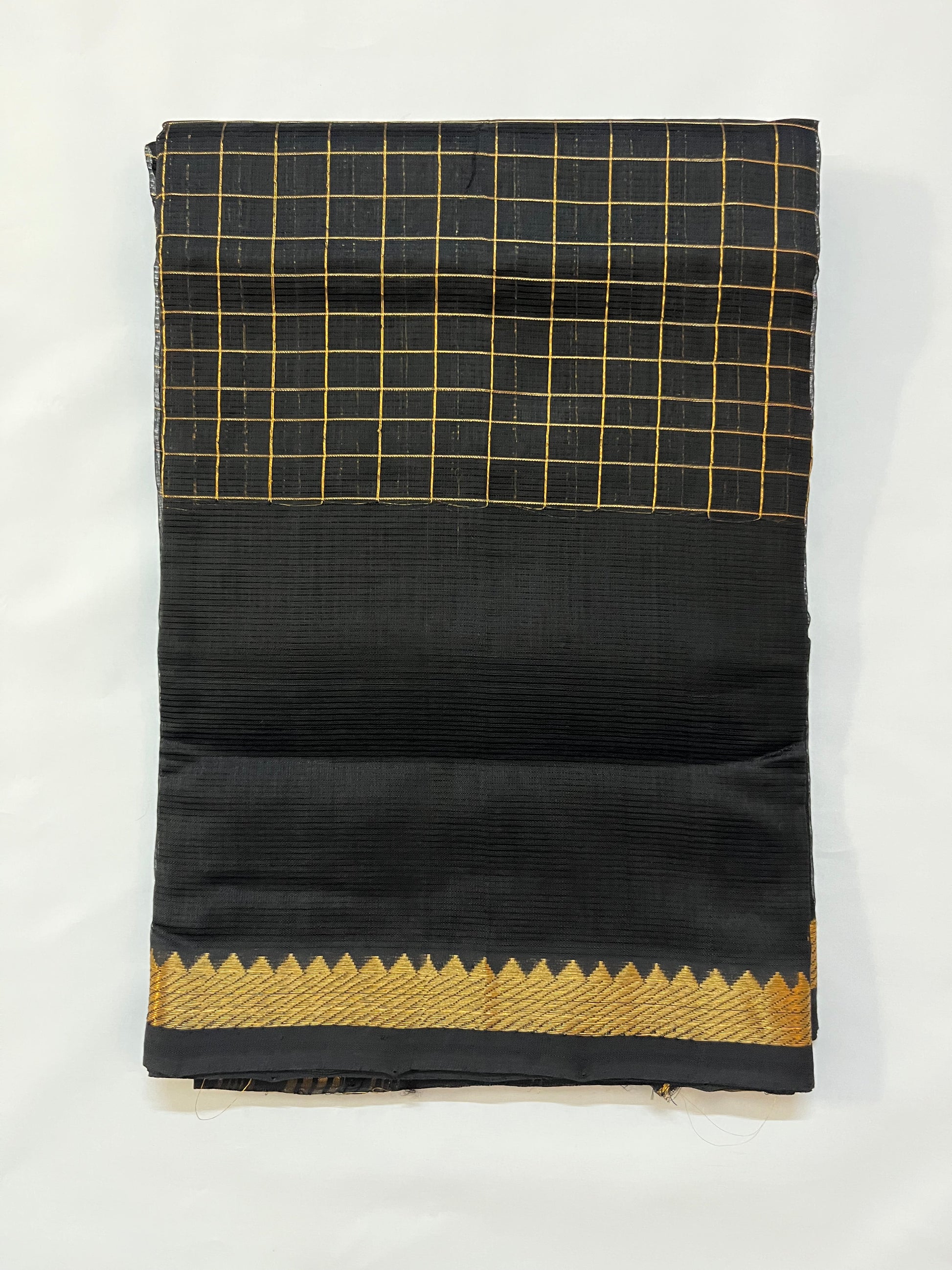 Magalgiri cotton Silk Saree - BLACK CHECKED